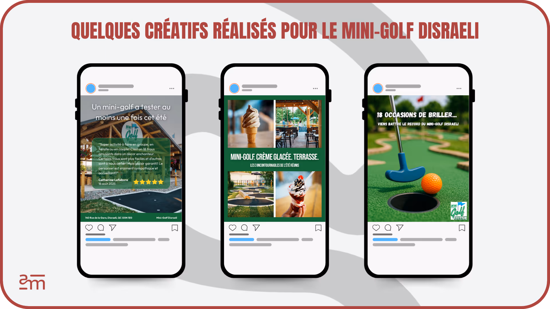 Avant notre collaboration, le Mini-Golf Disraeli n’avait jamais bénéficié d’une véritable stratégie publicitaire numérique.